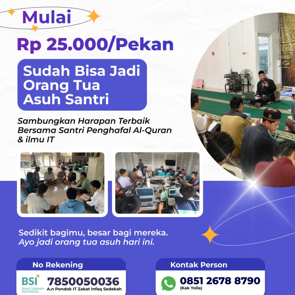 Yuk, berdonasi untuk pendidikan para santri pondok IT mulai dari Rp 25 rb sudah bisa menjadi Orangtua Asuh Santri